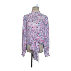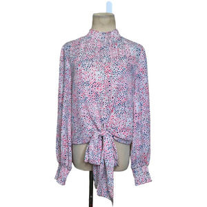 Rachel Zoe confetti print mock neck front tie blouse size XS