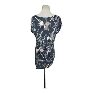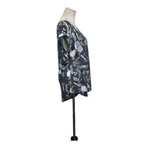 Rachel Zoe gray floral linen short sleeves top size L