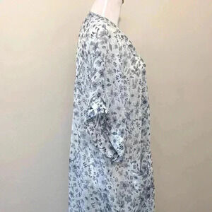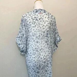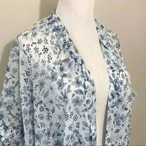 Rachel Zoe sheer white and blue flower chiffon long kimono