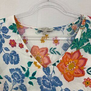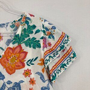 Rachel Zoe size 1X Colorful Floral V Neck Flutter Sleeve Blouse Feminine