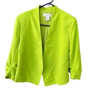 Rachel Zoe size L lime Green 3/4 pleated sleeves short jacket. Chic modern piece perfect for a tailored fit . Perfect for high waisted pants skirts or longer tailored shorts.