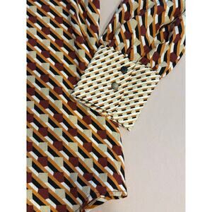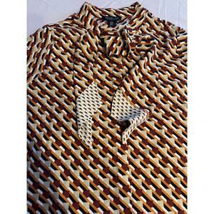 Rachel Zoe women’s button down blouse geometric print Medium Business Casual Tie