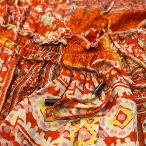 Rachel Zoe/Boho Keyhole Rayon Blouse Top Orange Yellow Sz Small
