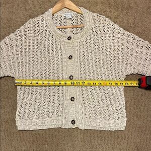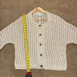 Elegant cream knit cardigan with button closure. Ideal for layering.