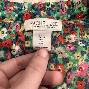 Rachel Zoe Green Floral V-Neck Tassel Tie Boho Peasant Blouse Women's M