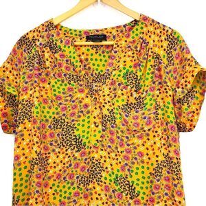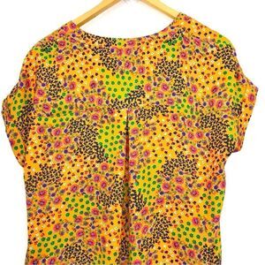 Rachel Zoe Orange Colorful Floral Lightweight Popover Blouse
