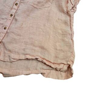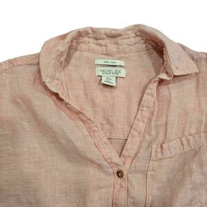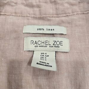 Rachel Zoe Top Women's Small Pink Collared 100% Linen Flutter Button-Up Blouse
