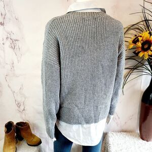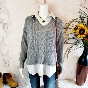 Excellent condition no flaws Rachel Zoe pullover soft knit cotton blend cable knit detail grey with faux layered white button shirt size small