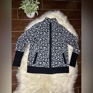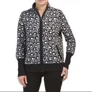 Rachel Zoe grey leopard print zip up sweater sz Large