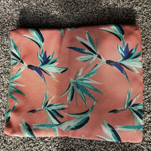 Teal and peach Hawaiian floral reversible fold over clutch pouch bag