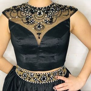 Two piece dress worn for a homecoming. Beaded with sequins. Tulle lined skirt . Measurements are flat and approximate. Good condition. Smoke free home