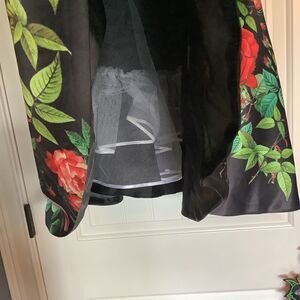 I LOVE this dress for designer Rachel Allan.This dress has been customized from its original form as the straps have been sewn down inside the dress. The straps could be easily unsewn as desired. Dress is matte satin. Fully lined with tulle. Pockets. Zips in back. So freaking cute! Size 14.