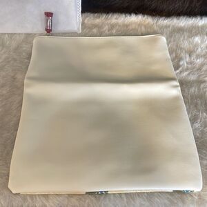 New without tags but comes with a dust bag. Cloth flower design on the front and leather in the back.