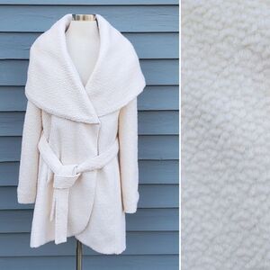 Rachel Parcell Ivory Boucle Wool Blend Wrap Tie Belt Snap Closure Midi Trench