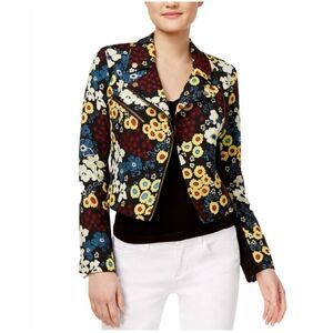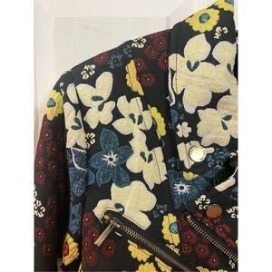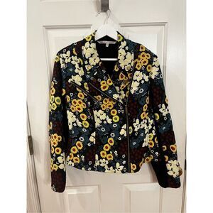 Rachel Rachel Roy Black Floral Embroidered Moto Jacket sz OX EUC