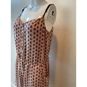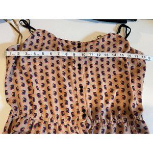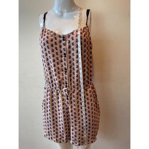 Rachel Rachel Roy Women Patterned Romper Adjustable Straps Front Button Tan SZ L