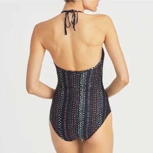 A fun take on a one piece! Strategic cut outs on the neckline make this a stunner but with full coverage through the tummy & bum. The modern dot print is fresh & fun!