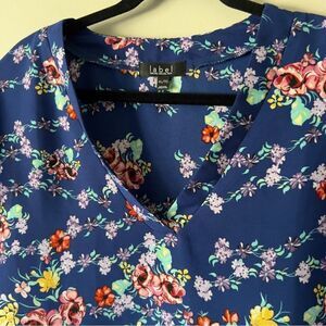 Rachel Ray Roy V-Neck Semi Sheer Hi-Lo Floral Blouse Size Extra Large. Blue, purple,yellow,red, orange. Two slide slits. Excellent used condition.