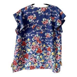 Rachel Ray Roy V-Neck Semi Sheer Hi-Lo Floral Blouse Size Extra Large