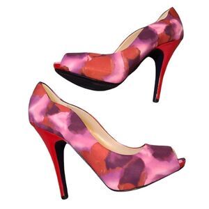 Rachel Roy Fabric Floral Pink Red Heels 7.5