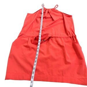 Rachel Roy coral halter neck tie waist casual dress size small. Super flattering with pockets. Easy packable fabric. Adjustable fit with tie waist. See photos for measurements and fabric content. Color is coral orangey red beautiful on everyone