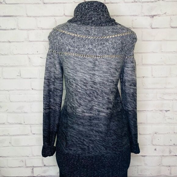 Knit cardigan with a snap closure . Pockets . Chain links throughout. Good condition. Smoke free home