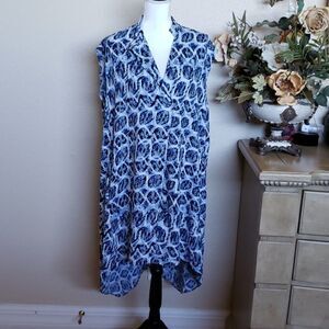 Rachel Roy Dress Blue White Shift Asymmetrical V-Neck Short Sleeve