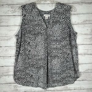 Rachel Zoe Black and White Blouse Cheetah Print Sleeveless Tunic Top 2X