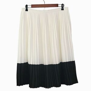 Rachel Zoe Color Block Cream & Black Knife Pleated Side Zip Skirt Size M