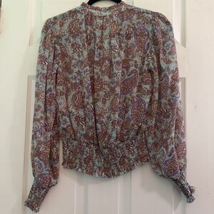Rachel Zoe Long Sleeve Paisley Print Blouse Size XS Blue, purple and gold.