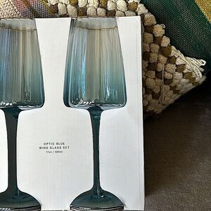 New!Rachel Zoe Optic Blue Wineglass Set!