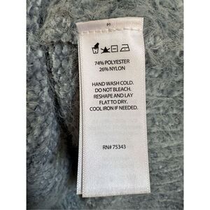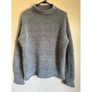 Rachel Zoe blue mock turtleneck soft fuzzy knit sweater sz L coastal granny cozy cabincore