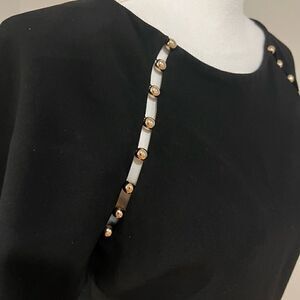 Rachel Zoe black dress, short sleeve with gold detail at waist and arm. Size 6. Excellent condition.