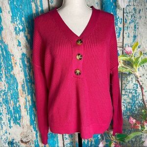 NWT Rachel Zoe Pink V-Neck Sweater 3 Button Kimono Sleeve Size small relaxed oversized fit 60%Cotton 40% polyester