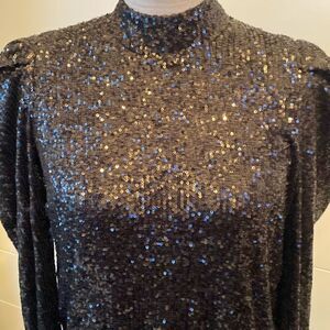 Rachel Zoe sequin Puff sleeve, high neck evening special occasion bodysuit!