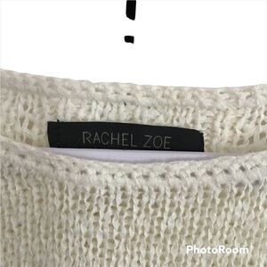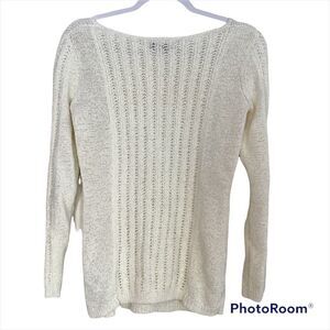 Loosely stitched rows form sleek shadow stripes over the back and sleeves of an open-knit work.