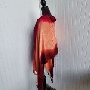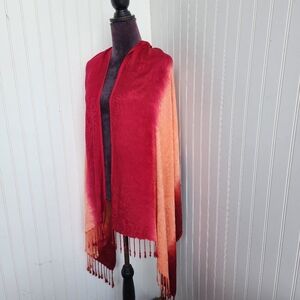 Rachele Burgundy Orange Ombré Scarf Fringe Viscose Soft 77"×28"