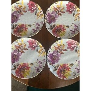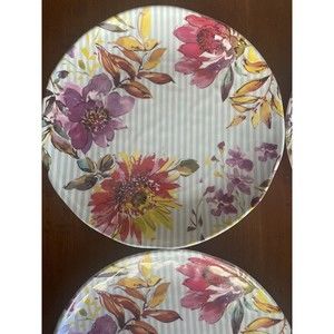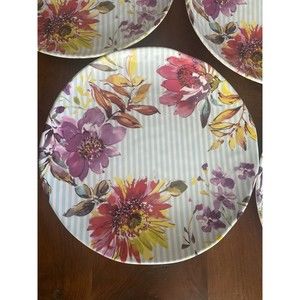 Rachell Ashwell Shabby Chic set of 4 Floral Stripe 11” Melamine Dinner Plates EC