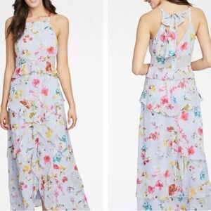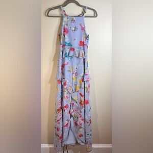 Rachelle Roy floral maxi, ruffles great movement semi sheer at waist size 0