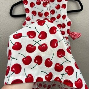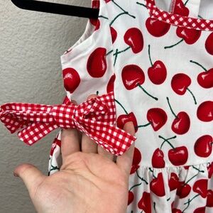 Rachel's Kids Girl's Cherry Dress with Gingham Trim and Side Ties Sz 6X