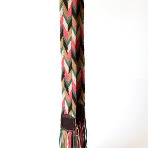 The Wayuu strap is hand made by artisans of Wayuu comunity. Many of the designs that are woven into each strap represent the natural elements that surround the Wayuu, and what their culture revolves around, such as: animals, the sun, plants, stars.