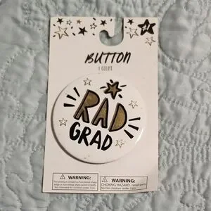 Celebrate graduation with this fun button. Features bold 'Rad Grad' text. Perfect for parties and gifts.