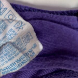50% cotton / 50% poly. In great gently used condition. Some minor cracking to the decal. Not super noticable overall or on but see zoomed in photo. My baby wore this at 6 months on her first cruise. She got so many compliments, and it was perfect with some room to grow, so I’m listing it as a 6-9 months. See photos for measurements.