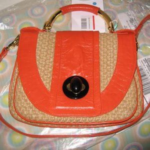 Rada Leather Woven Straw Top Handle Shoulder Bag
