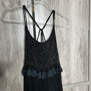 NWT Rada Maxi Dress Tassels Beaded Open Back Bohemian Black Color