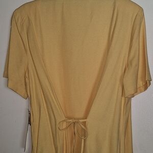 Radcliffe Blouse SzXL Ladies Gold Short Sleeves Covered Buttons Tie Back NWT