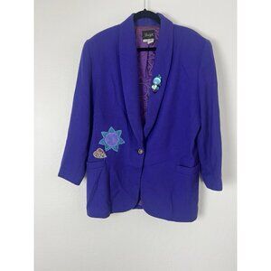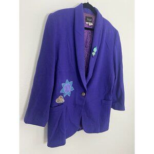 Radcliffe Vintage Purple Wool Funky Patchwork Embroidered Button Blazer Coat 16