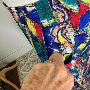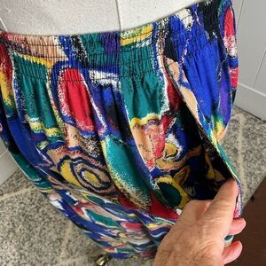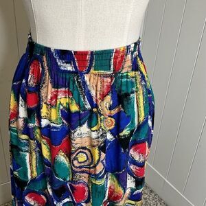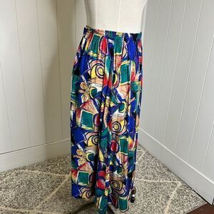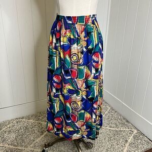 Vintage Radcliffe Women Medium Retro Midi Skirt Colorful Geo Print Pockets Elastic Waist