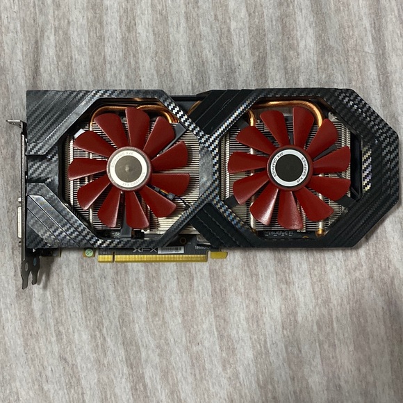 Brand new RX 580 made by Radeon, it is the 4gb model and has less than 5 hours run on it. The thing works like a charm.