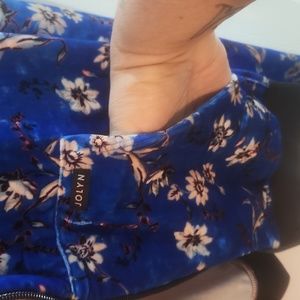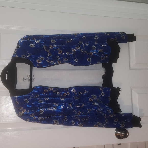 this is the radest blue flower print jacket ever! I never got to wear it, body issues lol... brand new. needs to go to a caring body!